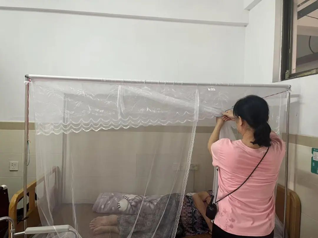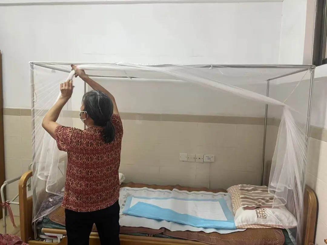 △茶山敬老院为门窗加装细密纱网、悬挂透气蚊帐
