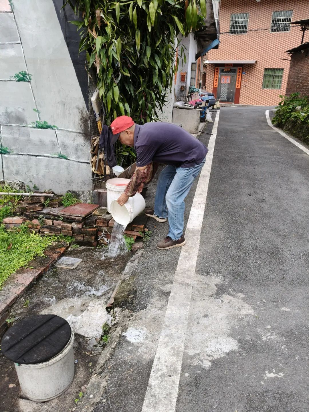△增埗村对蚊虫易孳生和藏匿的重点区域,进行药物喷洒消杀和投放生石灰